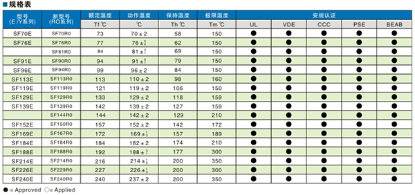 NEC temperature fuse SF-R series