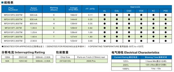 MF2410F series 250V patch fuse